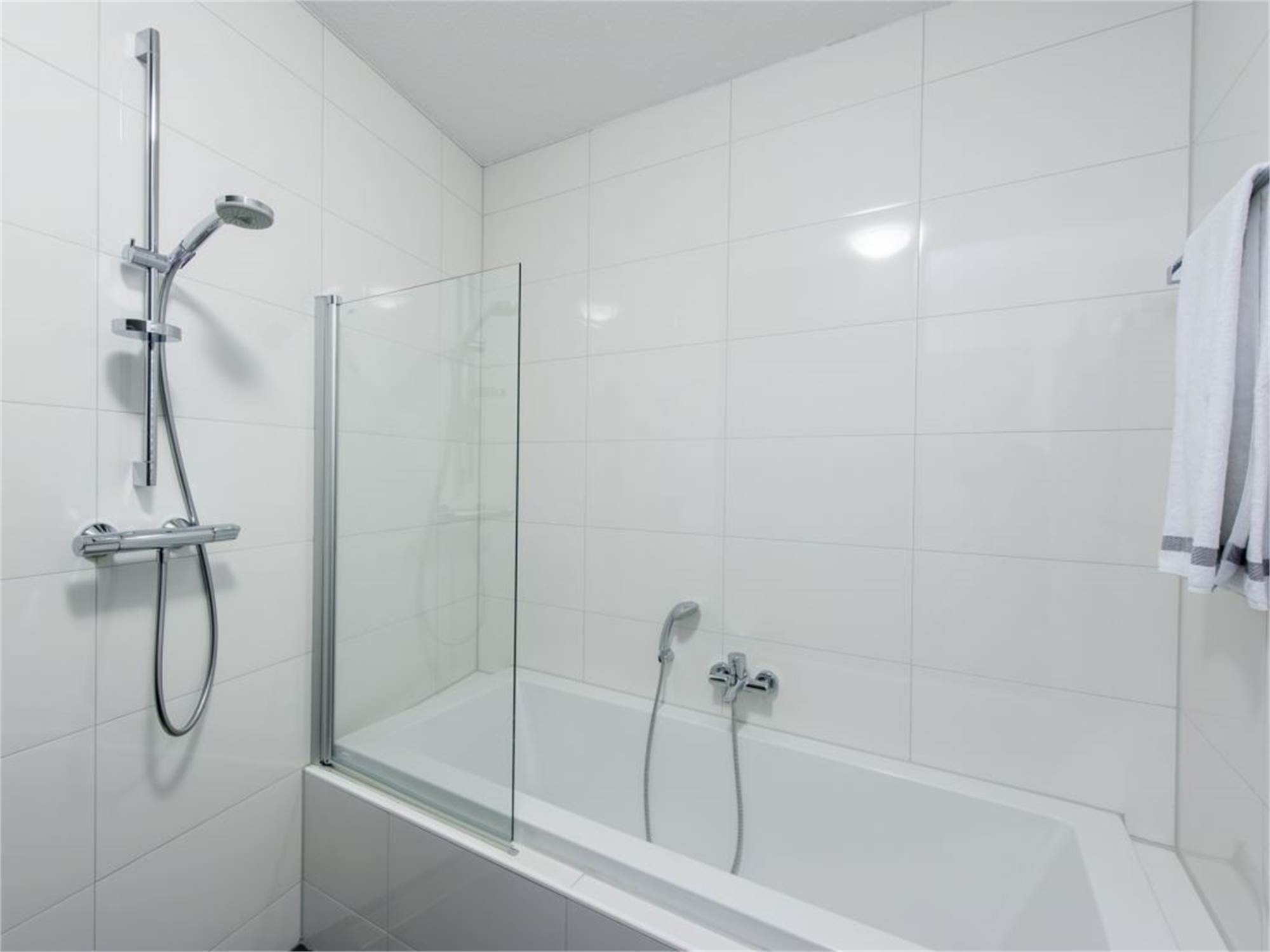 Bathroom with bathtub, shower cubicle and washbasin