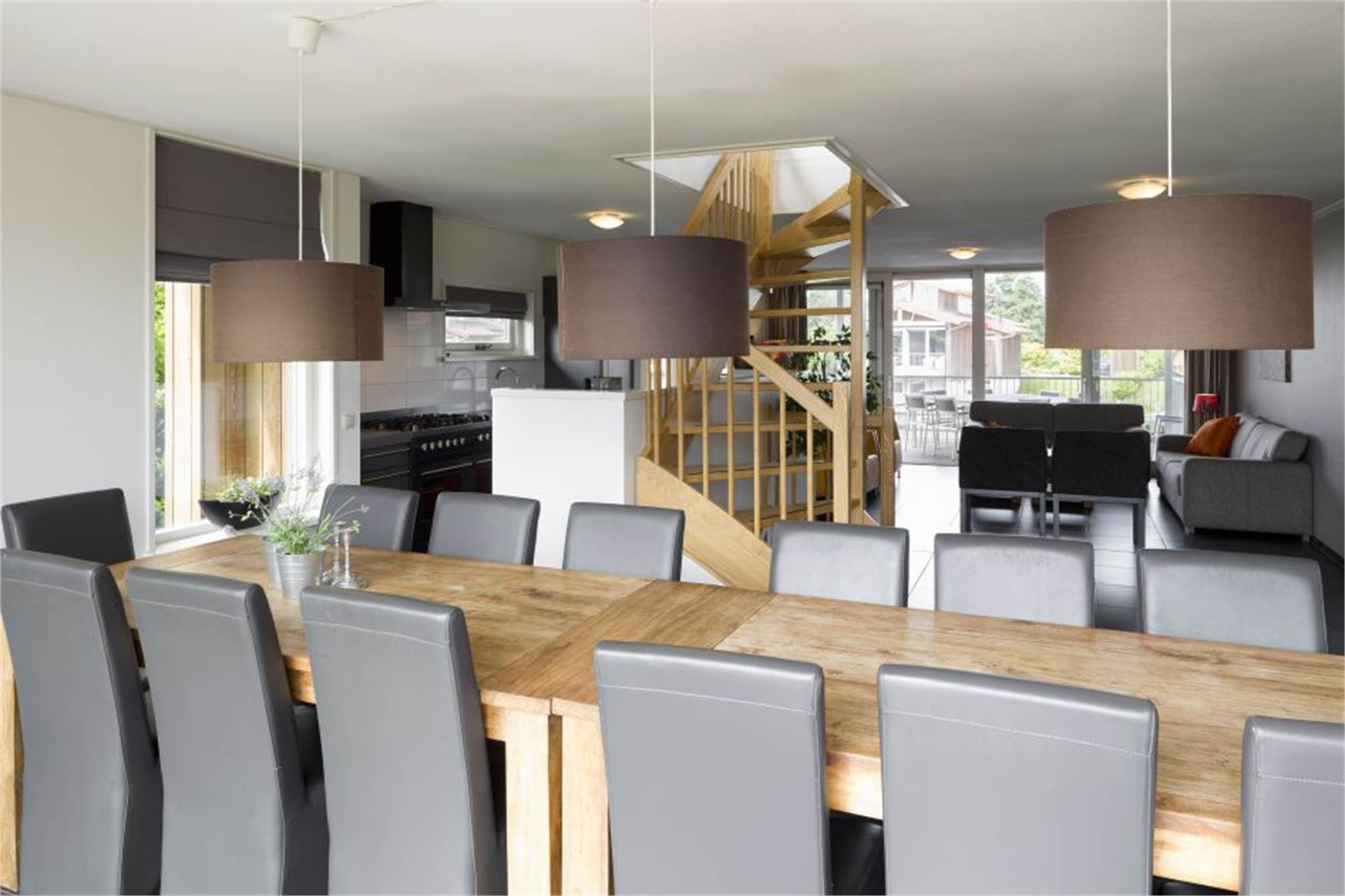 This bungalow can accommodate 14 people. The bungalow has 3 floors, the basement, the ground floor and the first floor. The bungalow is located directly by the water and has its own jetty. Outside there is a veranda and terrace. In the basement there are 2 bedrooms with 2 single beds each. 1 bedroom has a private bathroom with a shower and a sink. There are also 2 bedrooms with bunk beds and a separate bathroom. Upstairs there are 2 bedrooms with 2 single beds each and one bathroom. In total there are 6 bedrooms. There are 2 separate toilets, 1 in the basement and 1 on the ground floor. On the ground floor there is also the kitchen with the stove, dishwasher and fridge freezer. There is also a washing machine and a tumble dryer. There is also the option to park at the bungalow. You can use free Wi-Fi in the bungalow.