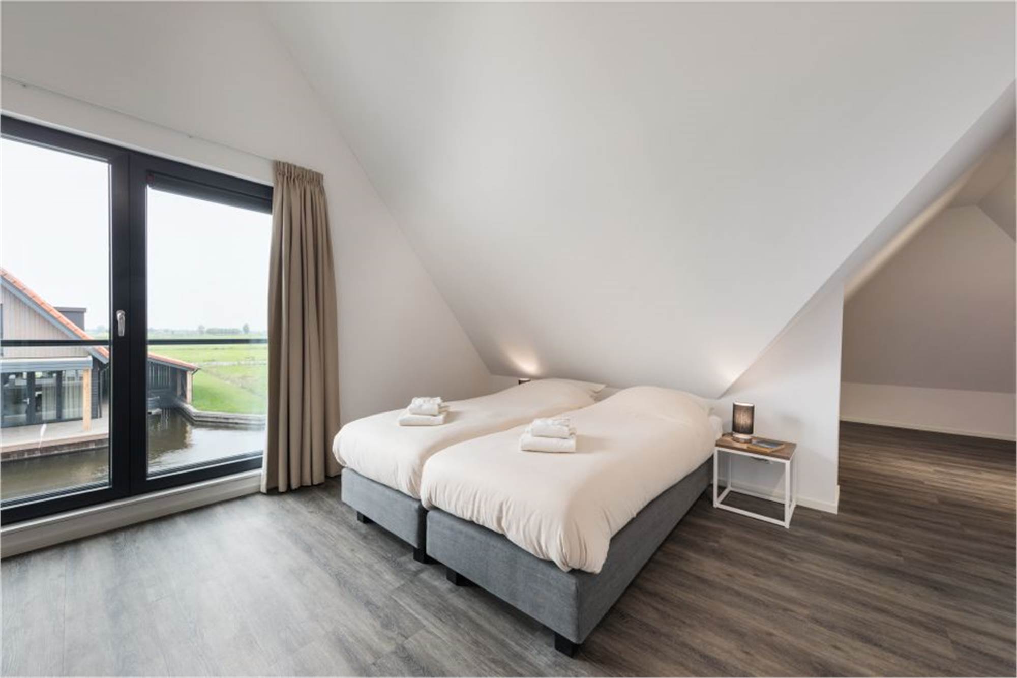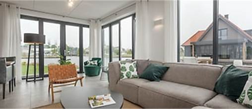 This new, detached villa is suitable for eight people. Downstairs, you will find the living room, which features a smart TV, and the kitchen, which is equipped with a combination microwave, coffee machine, dishwasher and more. There is one bedroom with two single beds and an adjoining bathroom with a walk-in shower. There are three bedrooms on the first floor, one of which features an adjoining bathroom with a walk-in shower and toilet. The bedrooms are furnished with two single beds. The third bathroom features a walk-in shower. Furthermore, the villa has two separate toilets. Outside, you will find the garden and furnished patio. The villa is located on the water (with opportunities for fishing), has its own jetty and comes with the use of a sloop from April to October. The villa has two parking spaces and Wi-Fi is available free of charge.