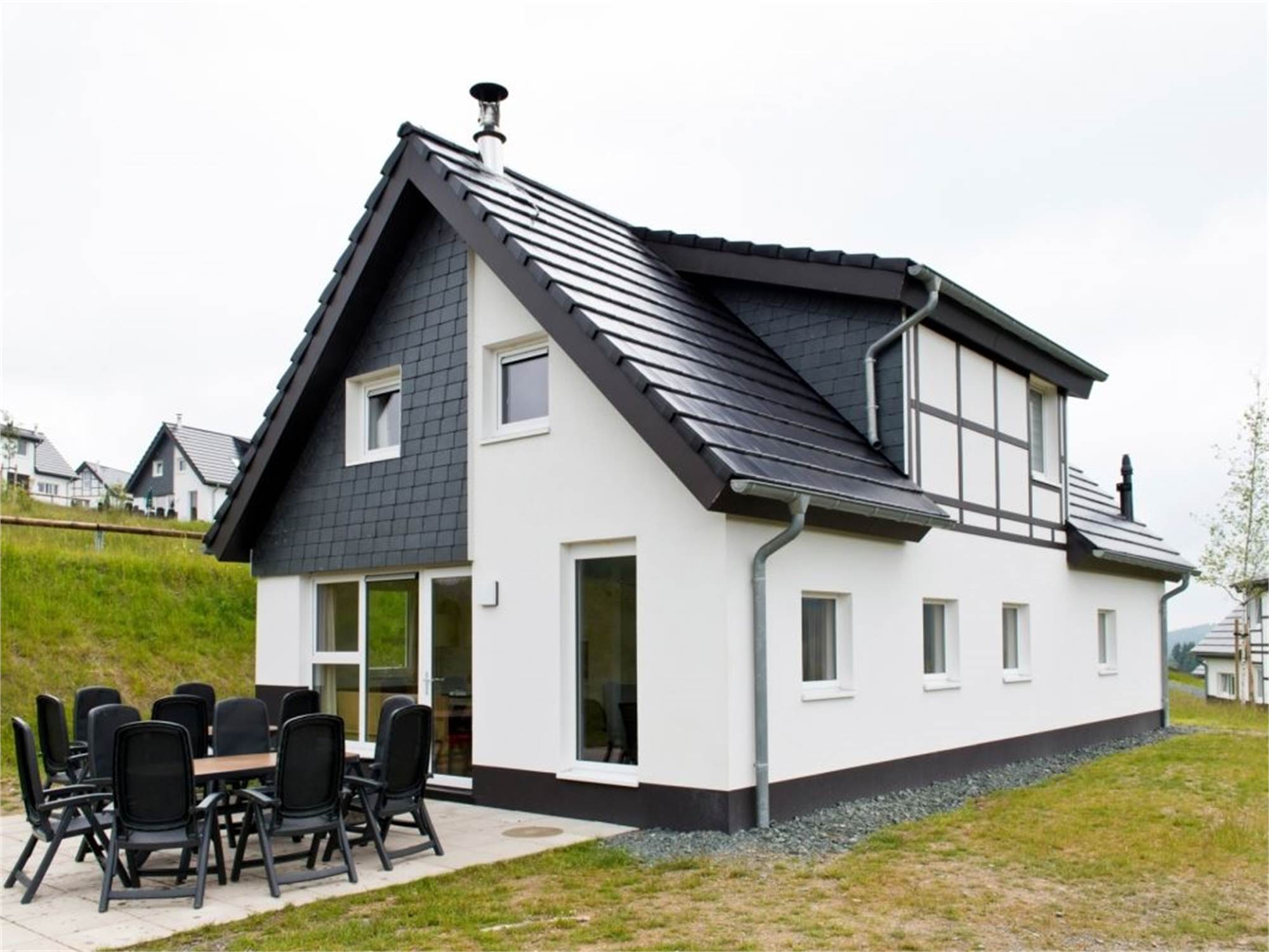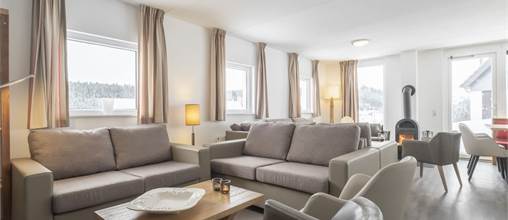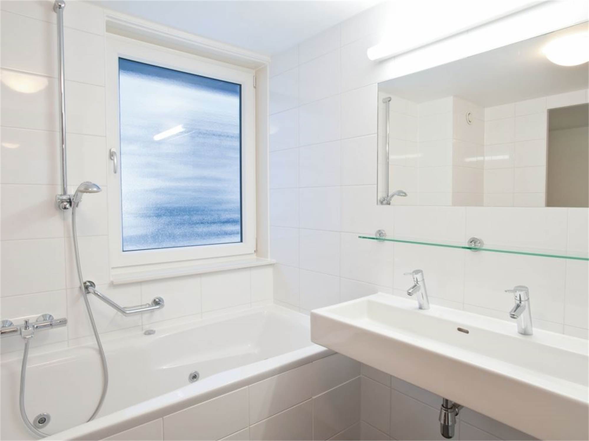 Bathroom with shower cubicle, double washbasin and toilet on the first floor