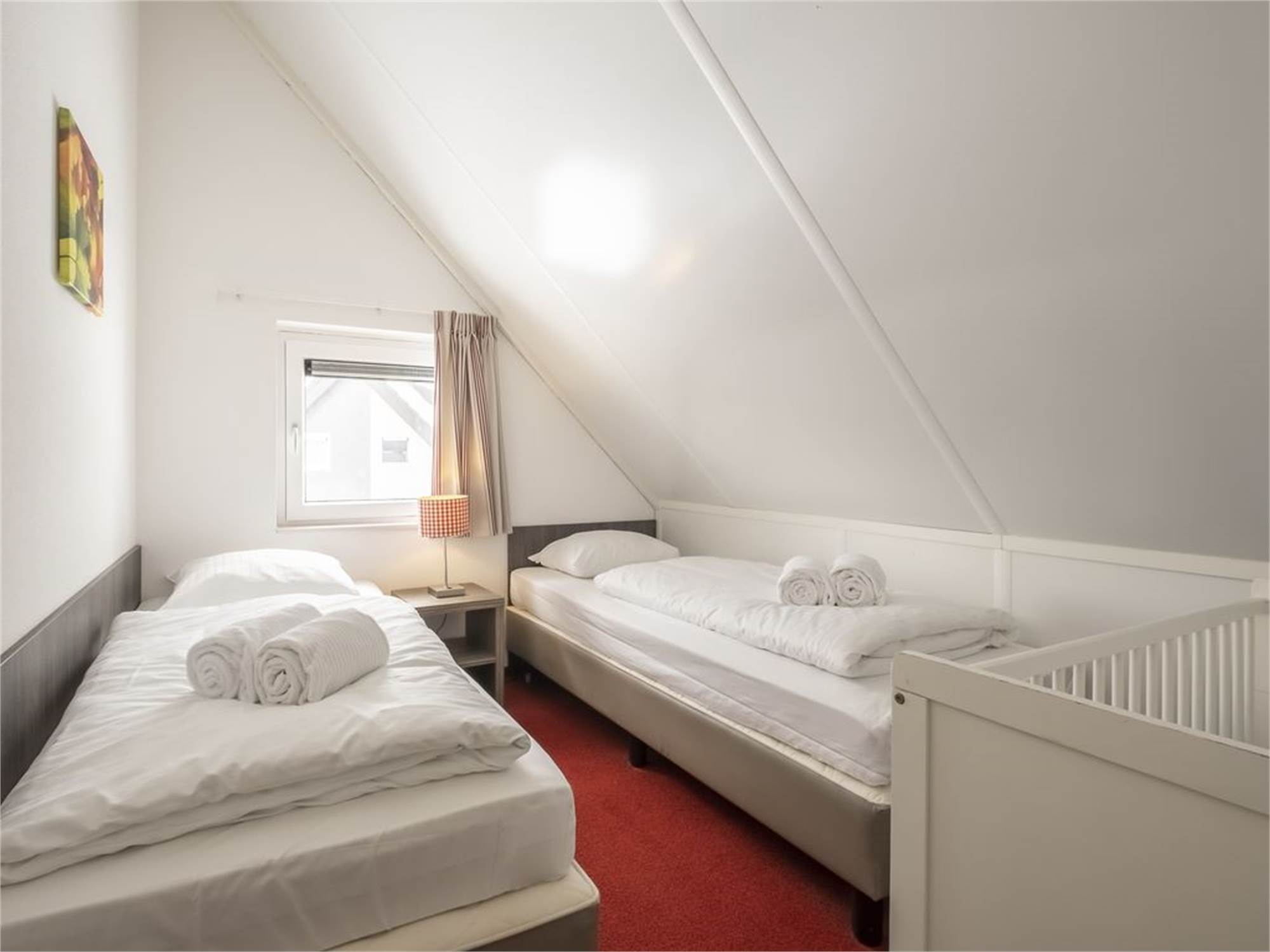 Bedroom with two single beds and flatscreen TV situated on the first floor