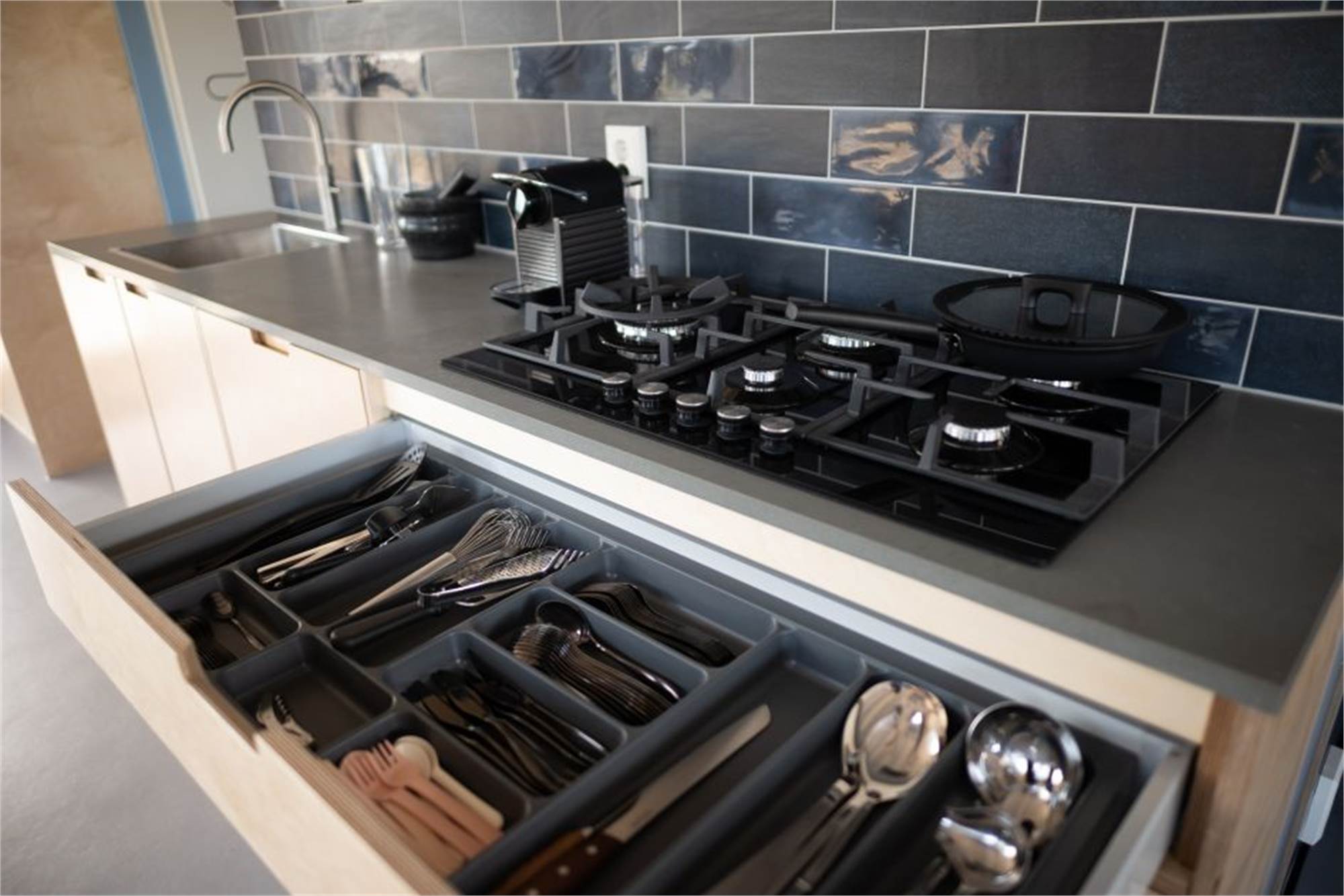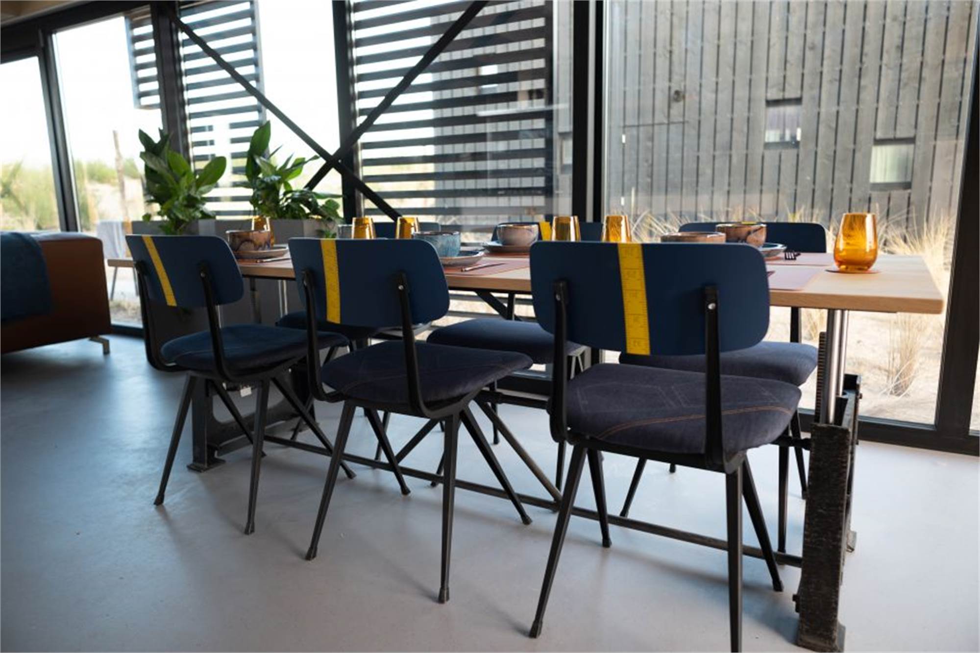 Jeans are tough, traditional and comfortable. Just like this stylish holiday home! Our Denim lodge brings an ode to Amsterdam, where many well-known jeans brands have started. This can be seen in the details: from tape measures on the upholstery of the chairs to a dining table that seems to come from a sewing workshop.