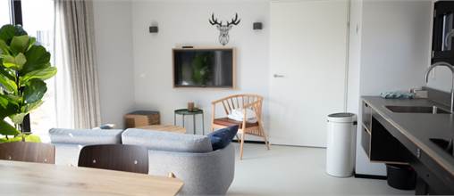 This detached villa can accommodate 4 people. The living room has a seating area, dining area and smart TV. The kitchen is fully equipped with a dishwasher, fridge with freezer compartment, combination microwave, coffee cup machine and a tap for boiling and sparkling water. There are 2 bedrooms with 2 single beds each. One of the bedrooms is adapted and has height-adjustable beds. The bathroom has a toilet, sink and shower with a shower seat and toilet grab bars that all fold down. The lodge has a garden with a veranda and lounge set. The entire lodge has underfloor heating and free Wi-Fi.