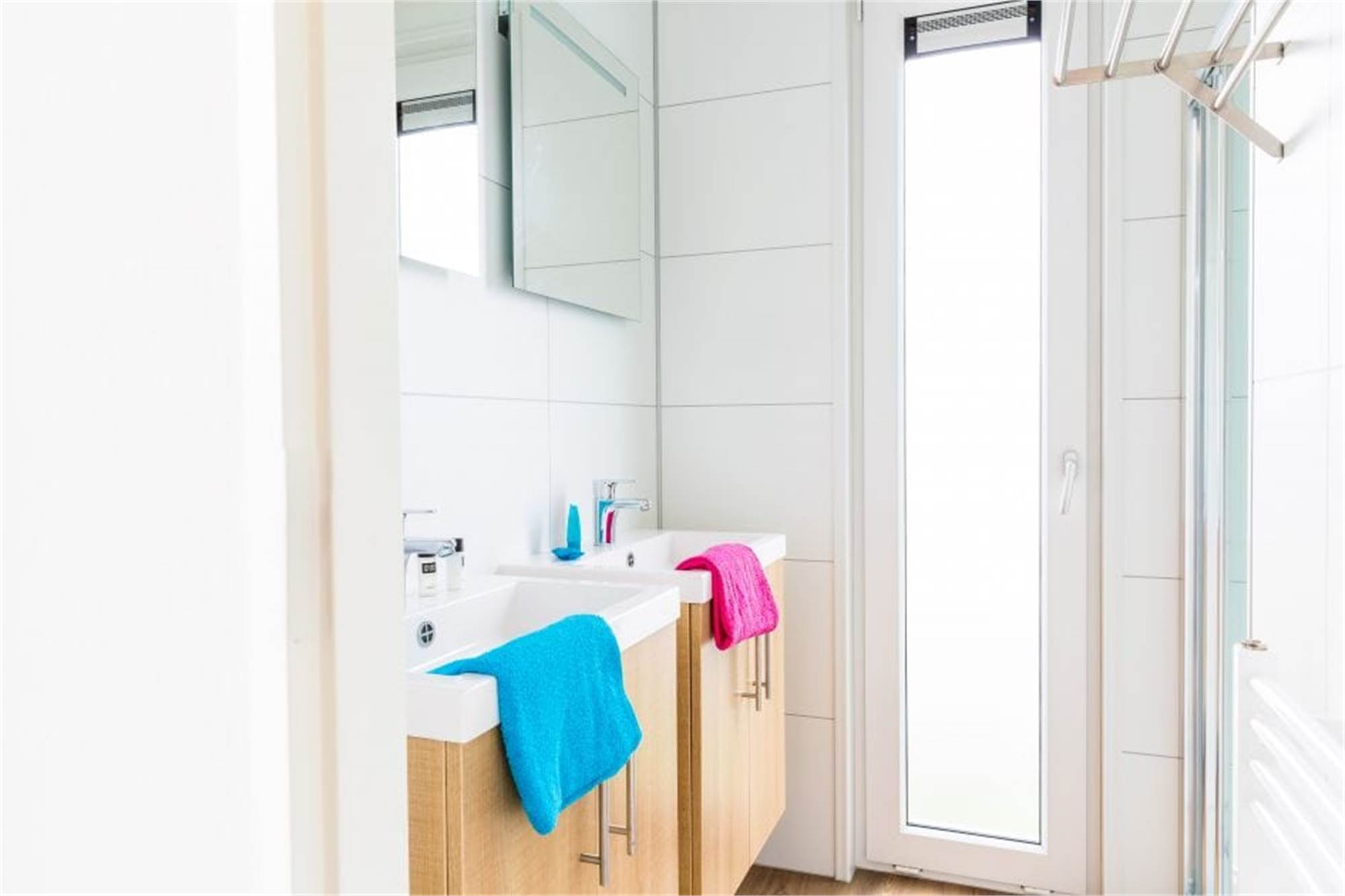 This detached ground floor lodge is suited for 6 persons. The living room has a lounge corner with smart TV. The kitchen comes with a dishwasher, microwave oven and refrigerator with freezer. The lodge has 3 bedrooms, 2 of which have 2 single box spring beds and 1 of which has a bunk bed. There is 1 bathroom with shower. The lodge also has a garden with furniture and you can make free use of the Wi-Fi. There is parking space for 1 car at the lodge. Some lodges are luxuriously equipped with a washing machine, dryer, television in the bedroom, lounge set and sun beds. These lodges can be booked with preference.