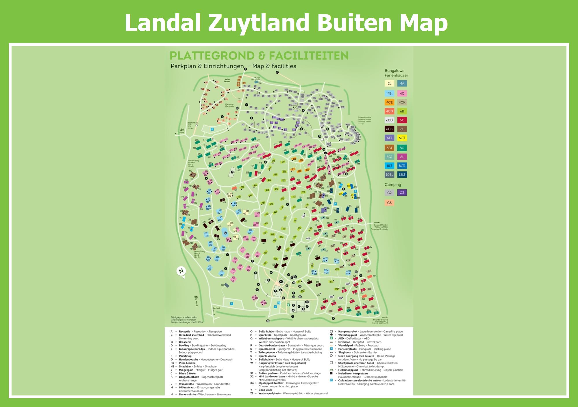 Up-to-date and comprehensive village map of Zuytland Buiten with all accommodations and facilities, also available as PDF.